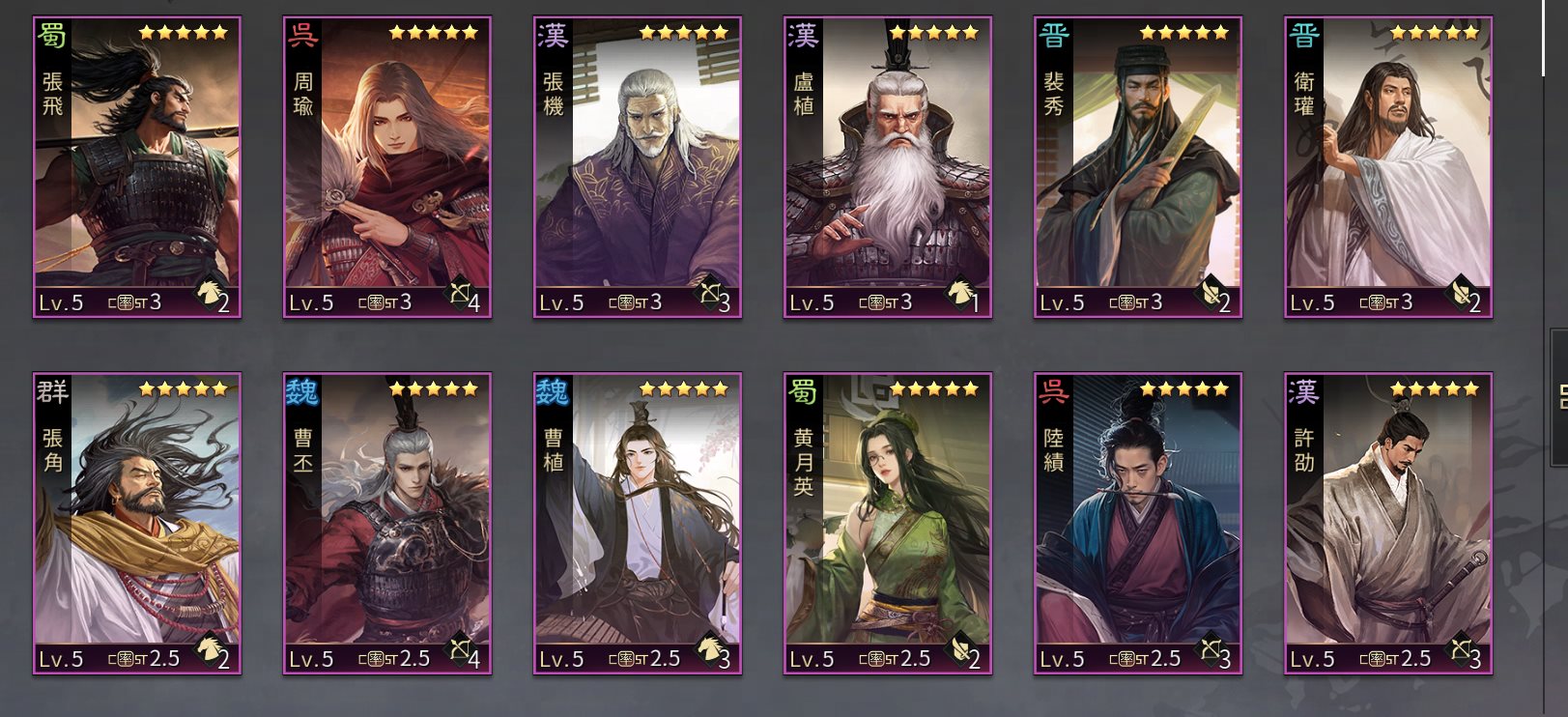 ・召募するたびに、必ず★3~★5名将が出現します。