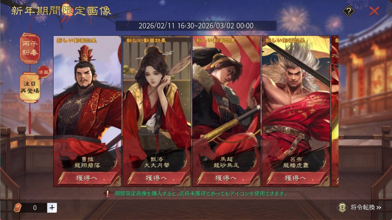 丙午の年にあたり、十干の「丙火」は前へ進む志と情熱を照らし出し、十二支の「午馬」は駆け抜ける力と突破の勢いを象徴します。万物が新たに生まれ変わるこの折、高らかな蹄音に満ちた新年を迎えるべく、各位主公に向けて新春祝賀イベントシリーズ第1弾の内容をお届けいたします。